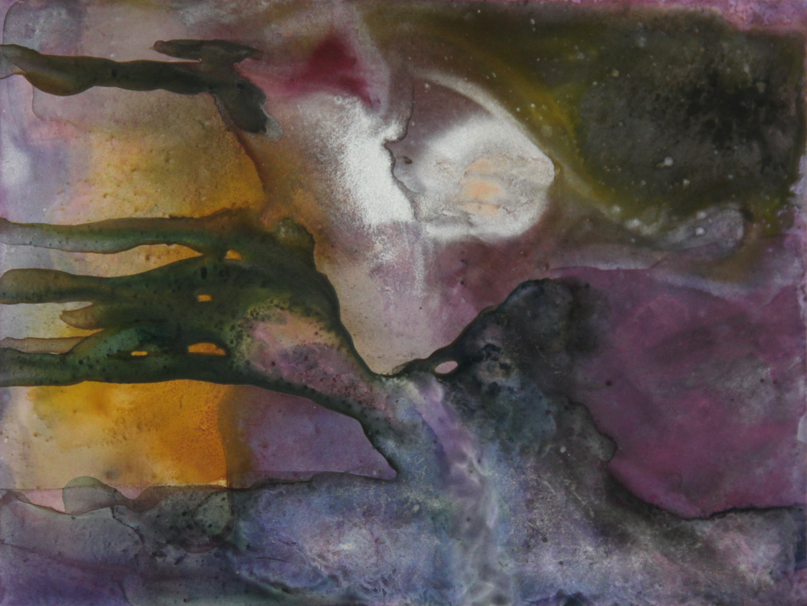 The art in Summer Drift was made with watercolour & inks on YUPO, a synthetic paper. Thirty-four paintings were completed in total, comprised of 16 large (11 x 14″) and 18 small (9 x 12″). The paintings below represent just over one-half of the work.